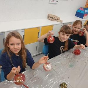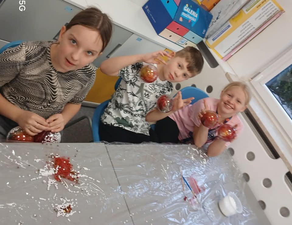 9 grudnia uczniowie zerówki oraz klas I–III wzięli udział w wyjątkowych, świątecznych warsztatach tworzenia bombek akrylowych.